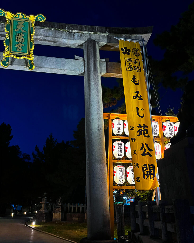 From Saturday, November 1, 2025, the “Shiseki Odoi Momijien” garden at Kitano Tenmangū will be open for its special autumn viewing.